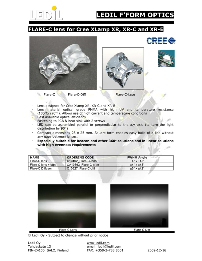 Soczewka FLARE-C-TAPE, ±4&deg x ±45&deg, z taśmą mocującą, do diod LED High Power seria XLamp, XR-C, XR-E, Ledil