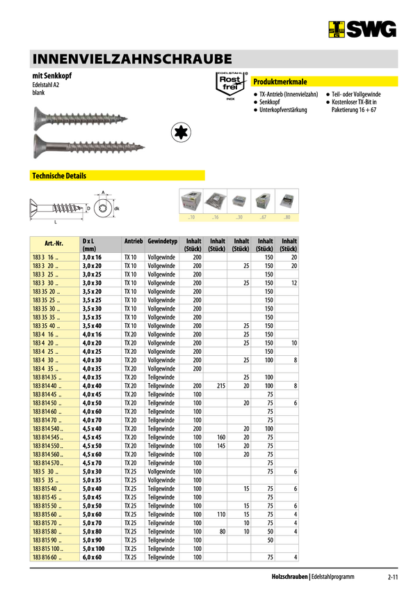 Wkręt z łbem płaskim SWG 1838169067 6 mm 90 mm 40 szt.
