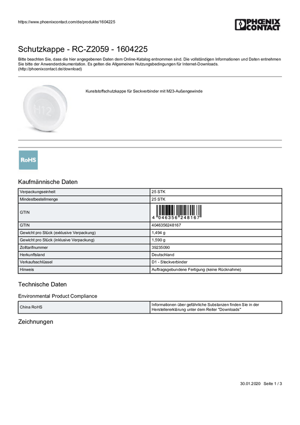 Phoenix Contact 1604225 Osłona czujnika/aktuatora RC-Z2059, 25 szt.