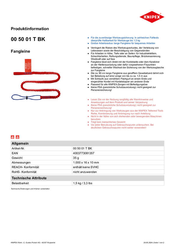 Linka zabezpieczająca Knipex 00 50 01 T BK