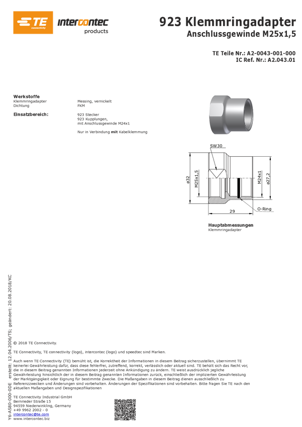 Intercontec A2.045.01 Adapter pierścienia zaciskowego 1 szt.