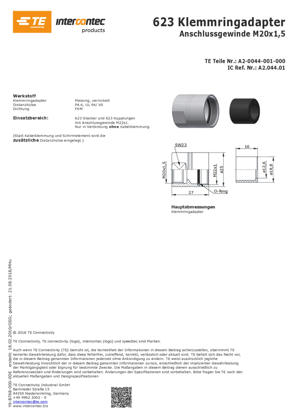 Intercontec A2.044.01 Adapter pierścienia zaciskowego 1 szt.