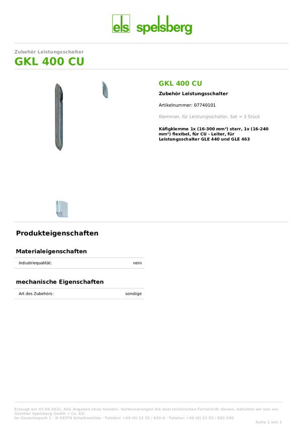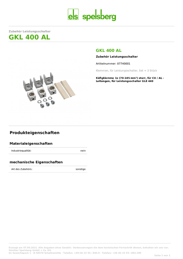 Blok zaciskowy Spelsberg GKL 400 AL 1 szt.