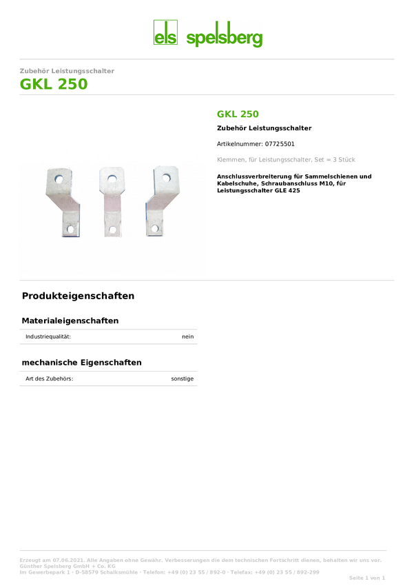 Blok zaciskowy Spelsberg GKL 250 1 szt.