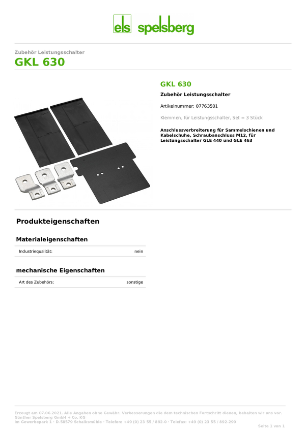 Blok zaciskowy Spelsberg GKL 630 AL 1 szt.