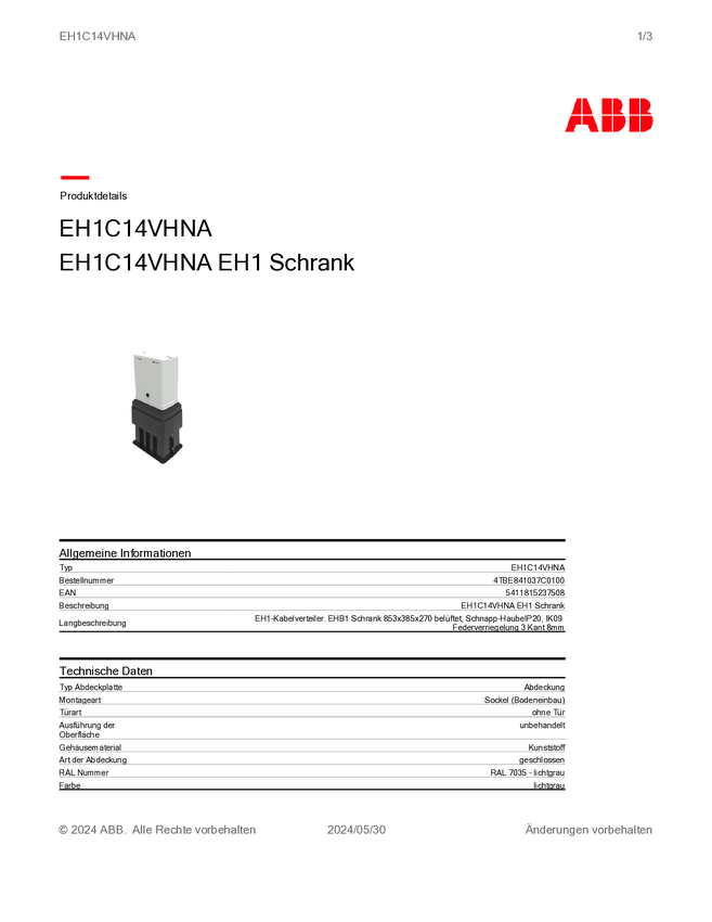Striebel & John 4TBE841037C0100 EHB1 Szafka rozdzielcza Zakopana podstawa Content 1 szt.
