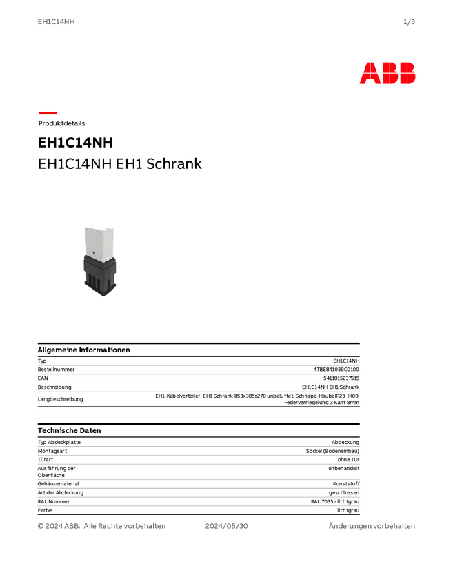 Striebel & John 4TBE841038C0100 EH1 Szafka rozdzielcza Zakopana podstawa Content 1 szt.