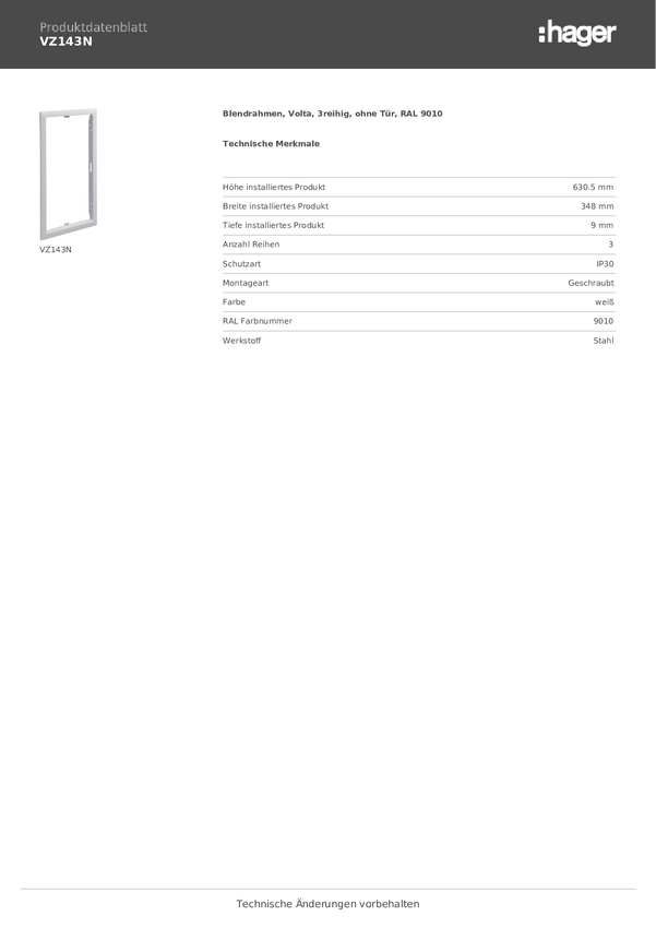 Hager VZ143N Rama zakrywająca metal biały 1 szt.
