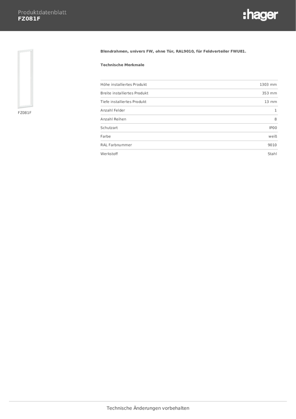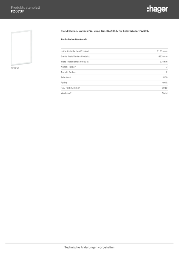Hager FZ073F Rama zakrywająca metal biały 1 szt.