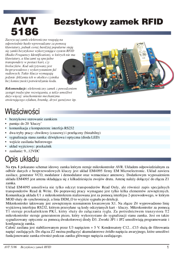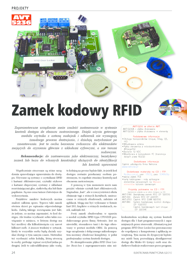 AVT5236 A+ Zamek kodowy RFID - płytka drukowana i zaprogramowany układ