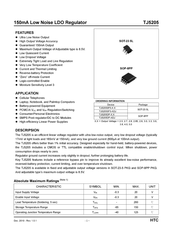 Stabilizator napięcia LDO Low-Noise, +3.0V, 150mA, SOT23-5, zamiennik dla LP2980IM5-3.0, SPX5205M5-L-3-0