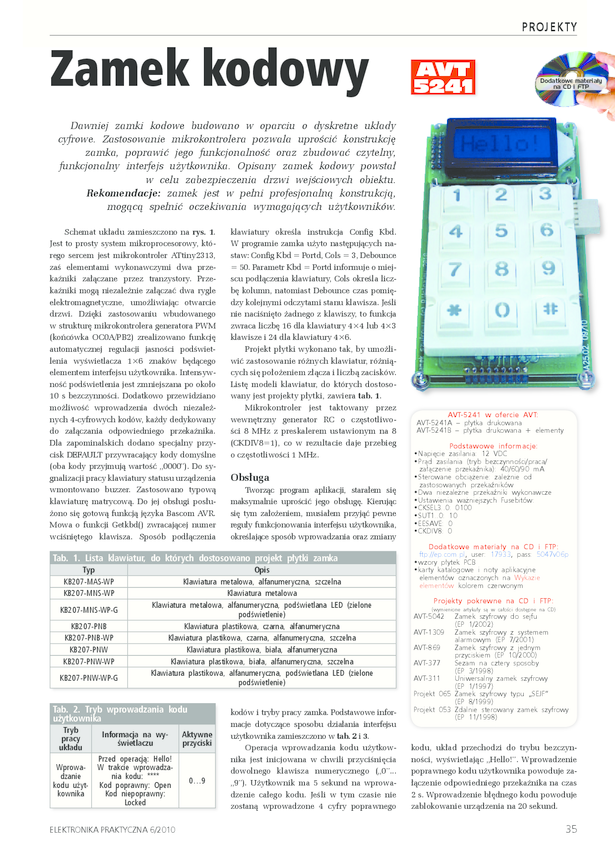 AVT522 Immobilizer - miniaturowy zamek szyfrowy