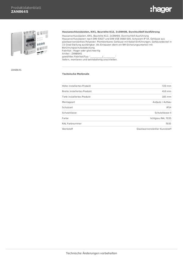 Domowa skrzynka przyłączeniowa Hager ZAN864C, 410 mm x 720 mm x 185 mm, 1 szt.
