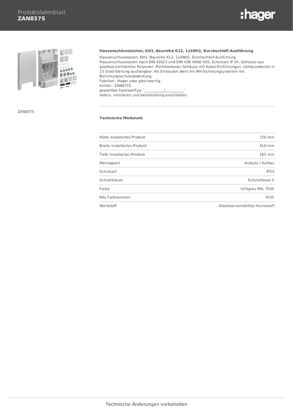 Domowa skrzynka przyłączeniowa Hager Sonstige Installationstechnik ZAN334C, 245 mm x 415 mm x 137 mm, 1 szt.