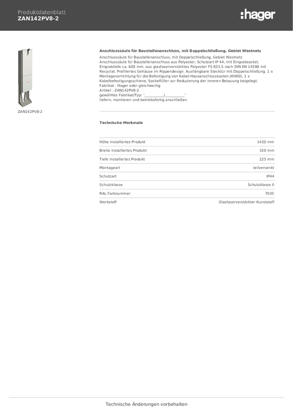 Hager ZAN142PV8-2 Kolumna połączenia 1 szt.
