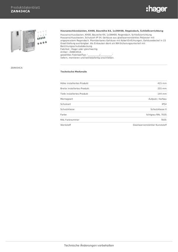 Domowa skrzynka przyłączeniowa Hager ZAN434CA, 255 mm x 415 mm x 144 mm, 1 szt.