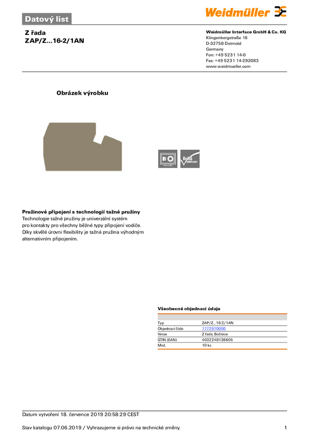 Płyta zamykająca Weidmüller ZAP/Z...16-2/1AN 1772970000, 10 szt.