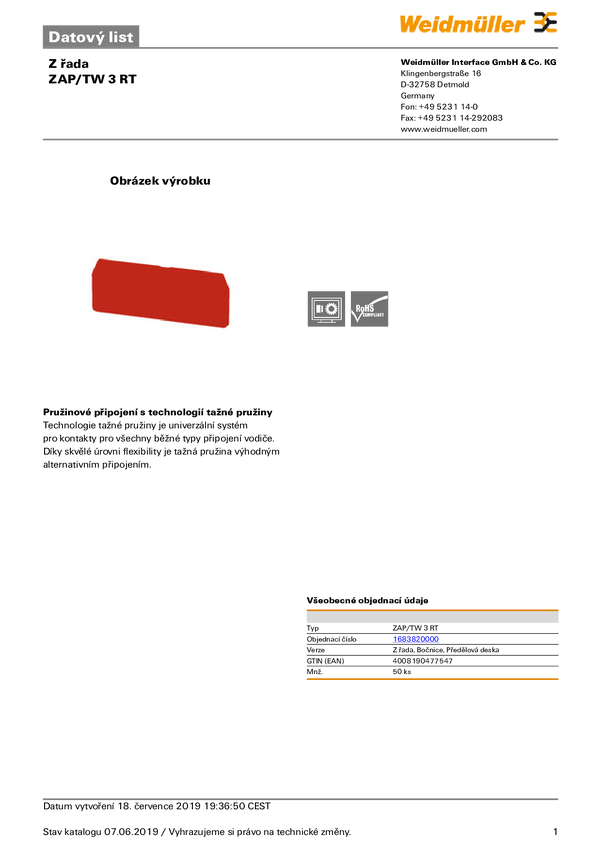 Płyta zamykająca Weidmüller ZAP/TW 3 RT 1683820000, 50 szt.