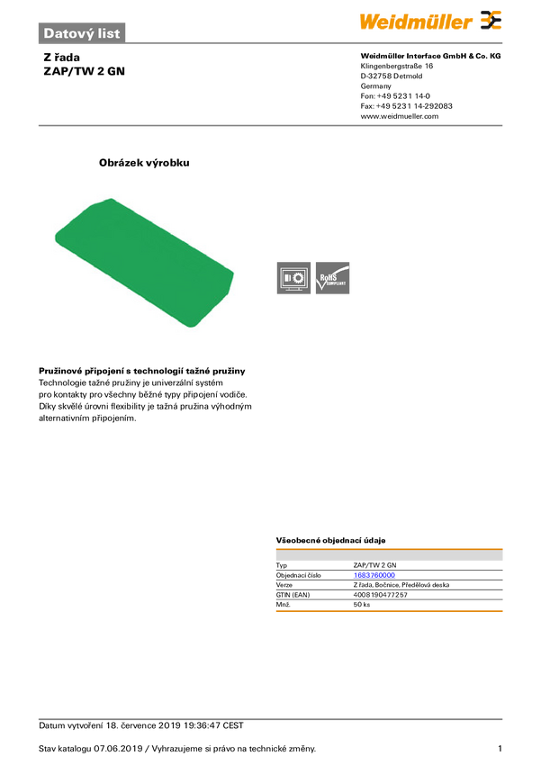 Płyta zamykająca Weidmüller ZAP/TW 2 GN 1683760000, 50 szt.