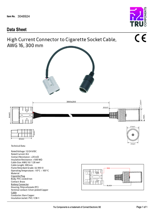 Złącze akumulatora wysokoprądowego na wtyczce zapalniczki samochodowej z bezpiecznikiem TC-12195692 czarny, czerwony TRU