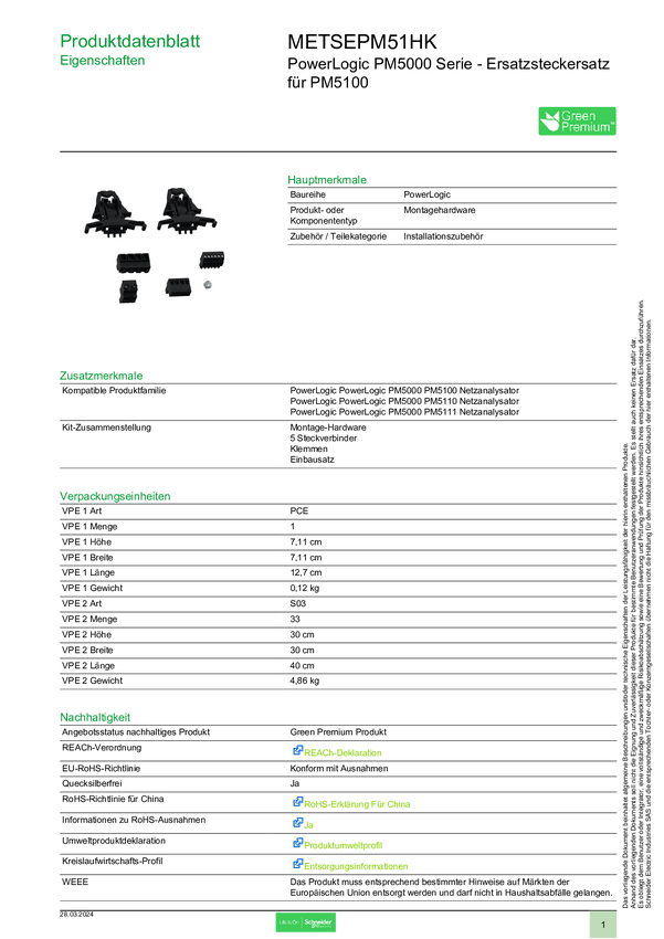 Schneider Electric Zapasowy zestaw wtyczek do Pm5100