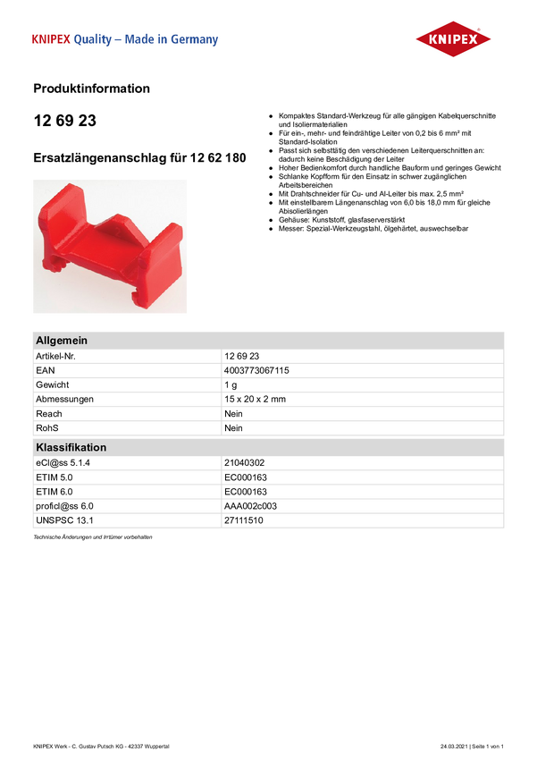 Zapasowy ogranicznik długości Knipex Knipex-Werk 12 69 23