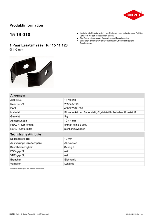 Zapasowy nóż do pęsety do ściągania izolacji Knipex 15 19 005