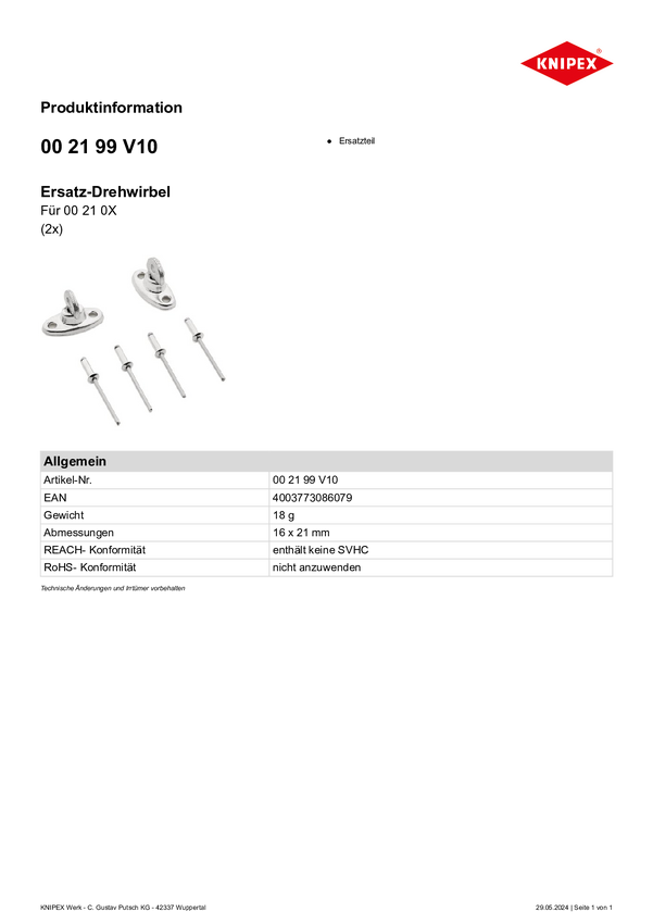 Knipex 00 21 99 V10 Zapasowy krętlik Knipex-Werk 1 szt.