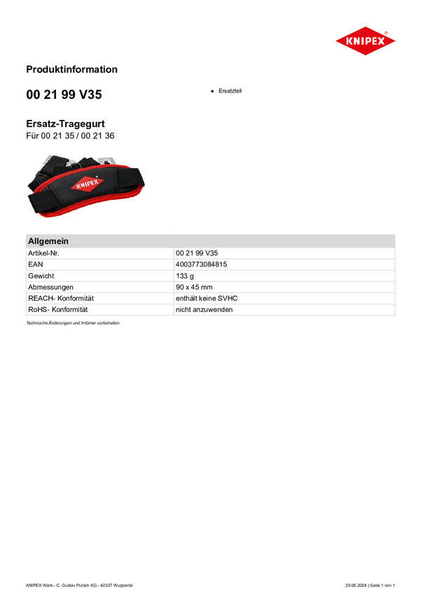 Knipex 00 21 99 V35 Zapasowy uchwyt do przenoszenia Knipex-Werk 1 szt.