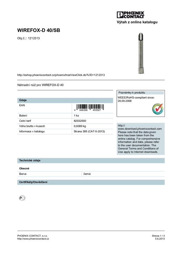 Nóż zapasowy WIREFOX-D 40/SB Phoenix Contact 1212313