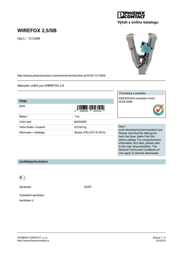Nóż zapasowy WIREFOX 2,5/SB Phoenix Contact 1212369