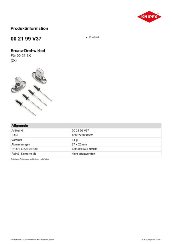 Zapasowy krętlik Knipex Knipex-Werk 00 21 99 V37, 1 szt.