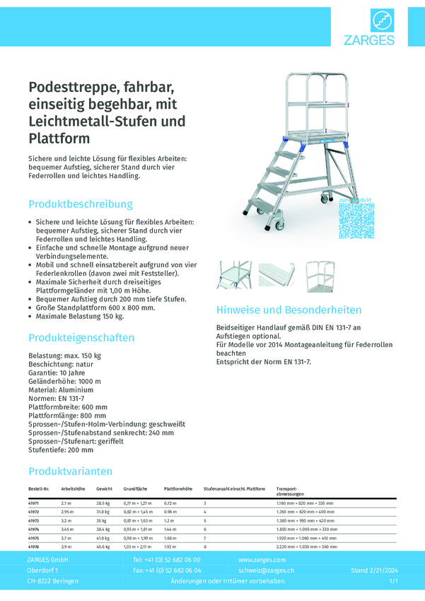 Podest ZARGES 41971 1 szt.