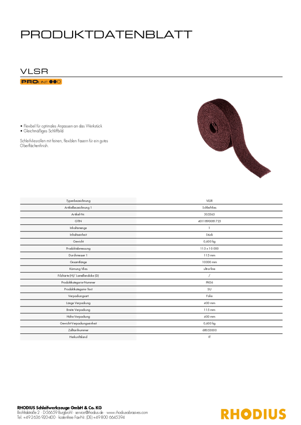 Rhodius 305365 RHODIUS VLSR, włóknina ścierna 115 x 10 000 mm, ultradrobna, PROline do uniwersalnego zastosowania 1 szt.