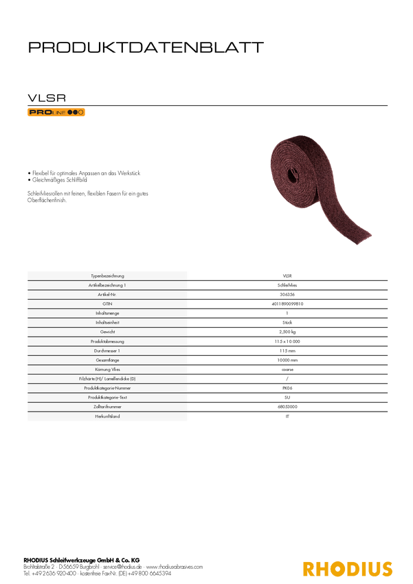 Rhodius 306356 RHODIUS VLSR, włóknina ścierna 115 x 10 000 mm, gruba, PROline do uniwersalnego zastosowania 1 szt.