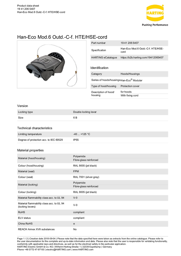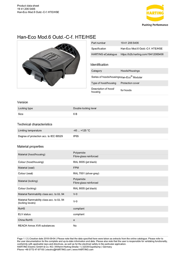 Zatyczka Harting 19 41 206 5406, 1 szt.