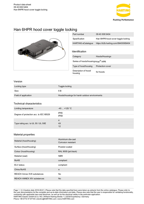 Zatyczka Harting 09 40 006 5404, 1 szt.