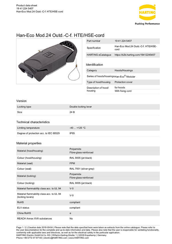 Zatyczka Harting 19 41 224 5407, 1 szt.