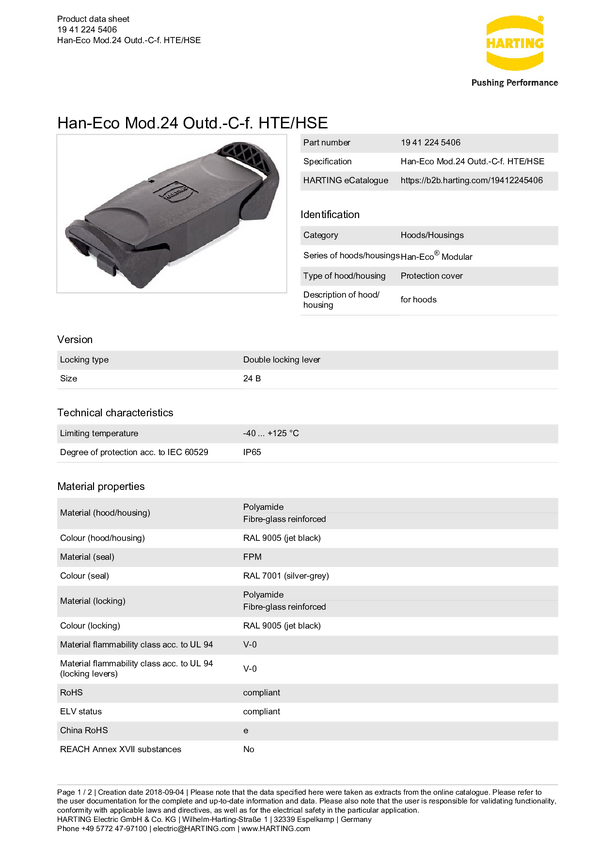 Zatyczka Harting 19 41 224 5406, 1 szt.