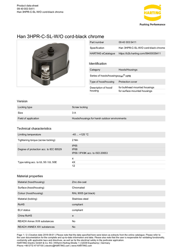 Zatyczka Harting 09 40 003 5411, 1 szt.
