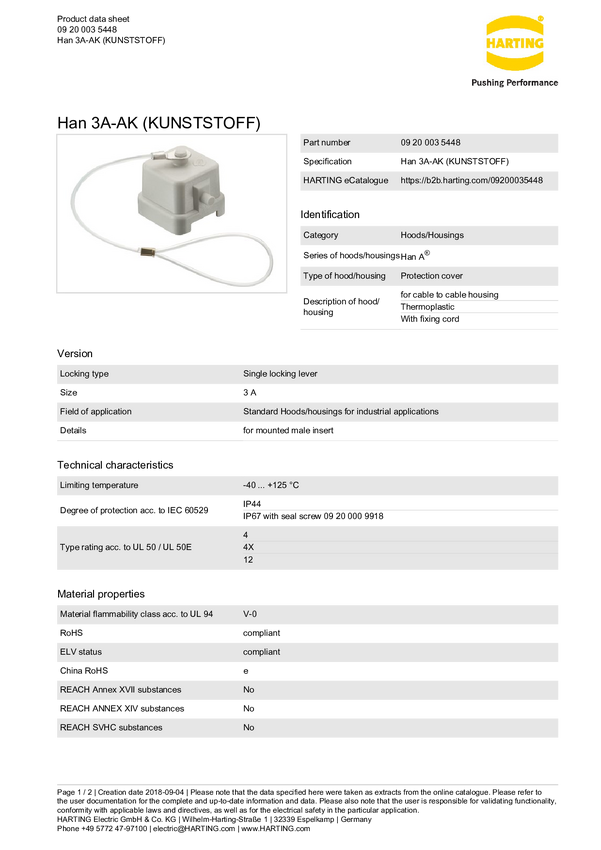 Zatyczka Harting 09 20 003 5448, 1 szt.