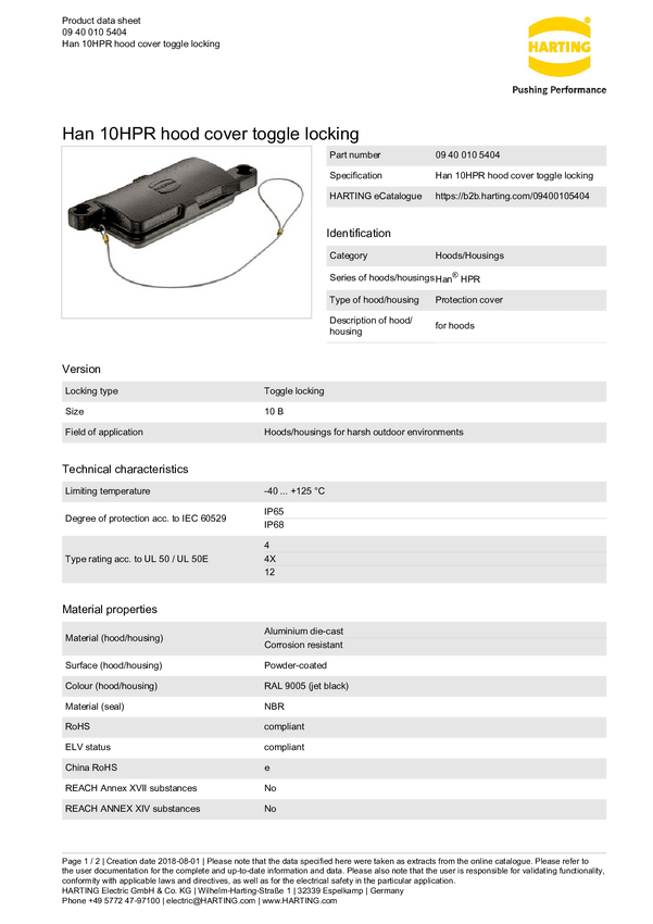 Zatyczka Harting 09 40 010 5404, 1 szt.