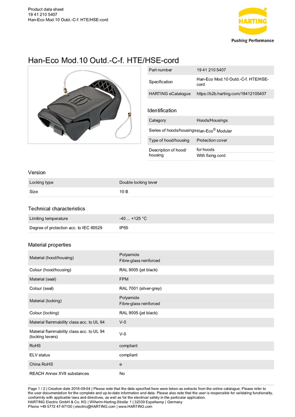 Zatyczka Harting 19 41 210 5407, 1 szt.