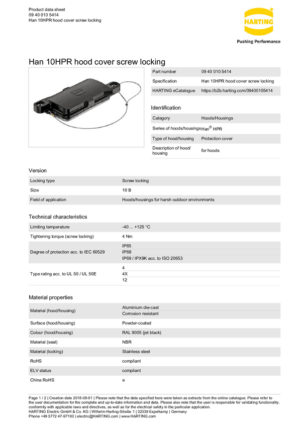 Zatyczka Harting 09 40 010 5414, 1 szt.