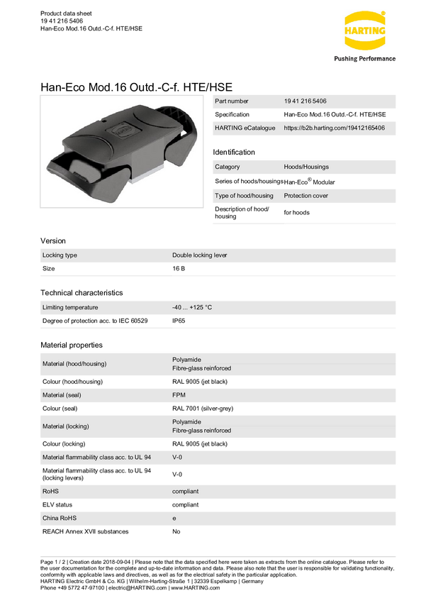 Zatyczka Harting 19 41 216 5406, 1 szt.