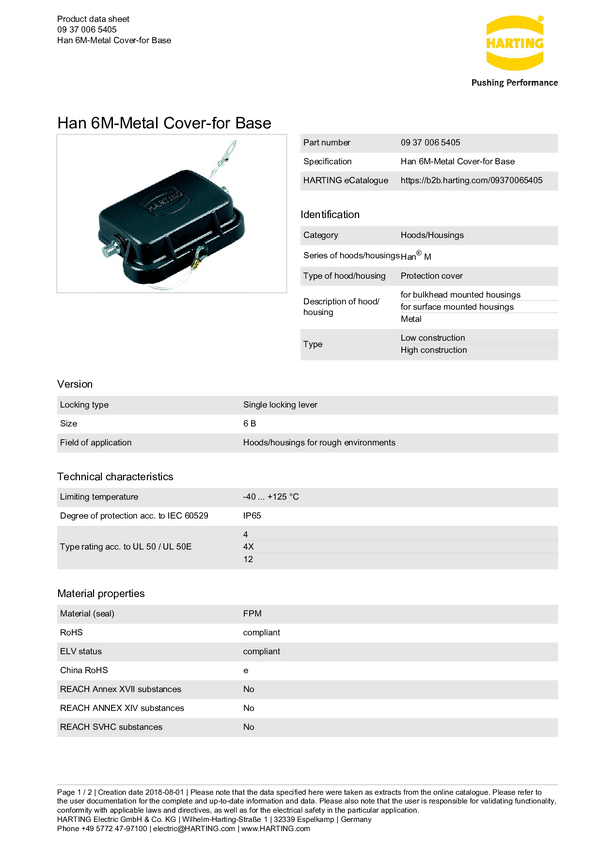 Zatyczka Harting 09 37 006 5405, 1 szt.