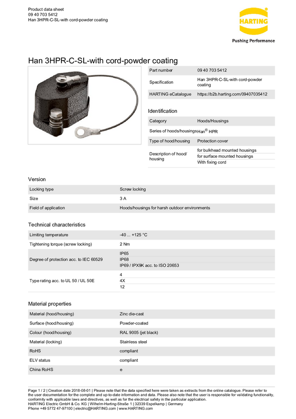 Zatyczka Harting 09 40 703 5412, 1 szt.