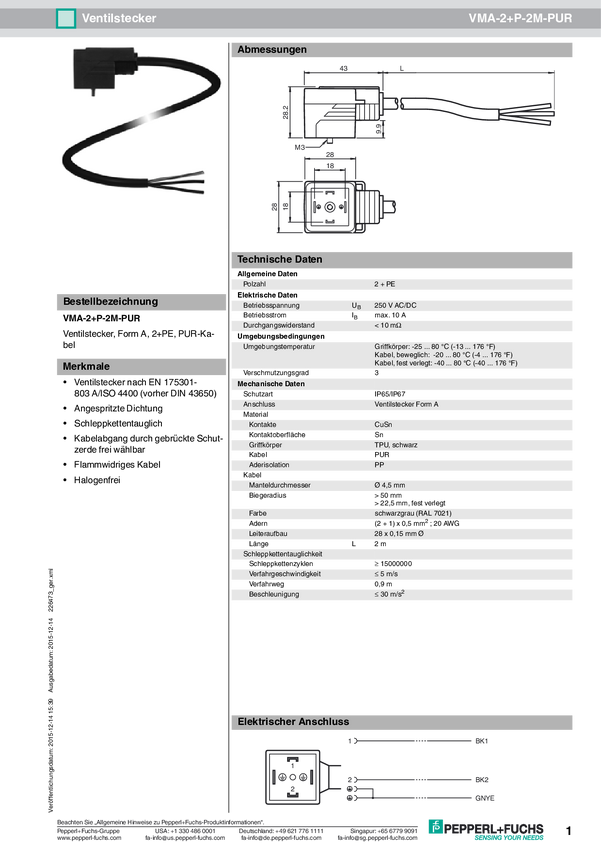 Złącze VMA-2+P-2M-PUR 226473 Pepperl+Fuchs Zawartość: 1 szt.