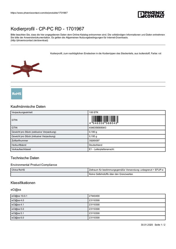 Profil kodujący CP-PC RD 1701967 Phoenix Contact Zawartość: 100 szt.