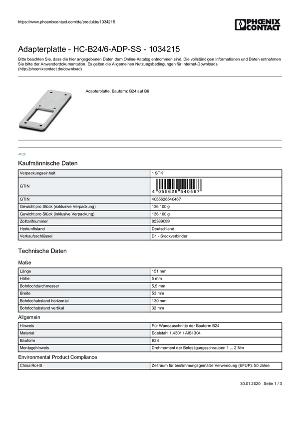 Phoenix Contact HC-B24/6-ADP-SS 1034215 Złącze przemysłowe Zawartość: 1 szt.